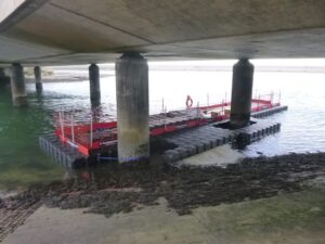 After more than 40 years in service, the bridge requires vital maintenance to ensure its long-term sustainability. A floating pontoon platform has been installed beneath the bridge to allow contractors safe access to carry out repairs to the underside of the structure and its supporting columns.